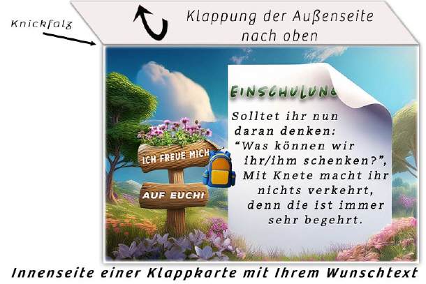 2. Ein Vorschaubild einer Innenseite mit einem Beispieltext, bei einer Bestellung von Klappkarten. Die Innenseite kann auch leer bleiben, falls Sie diese lieber selbst beschriften möchten.