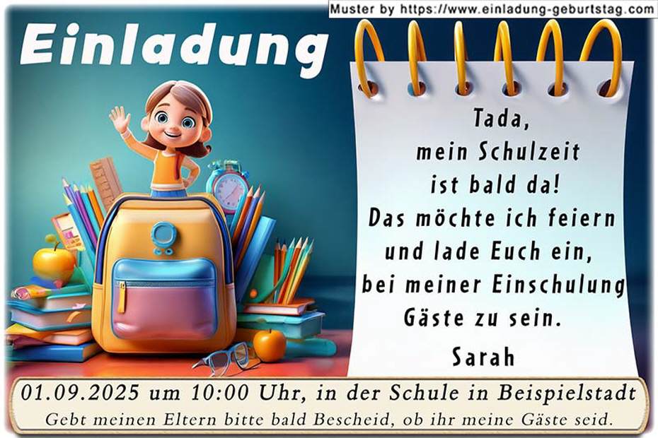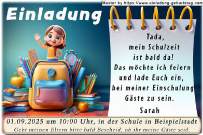 lustige Einladung Einschulung - Mädchen im Ranzen
