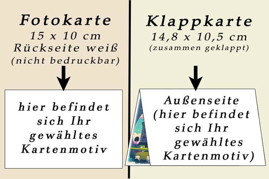 als Fotokarte (Rückseite weiß und nicht bedruckbar) oder als Klappkarte lieferbar