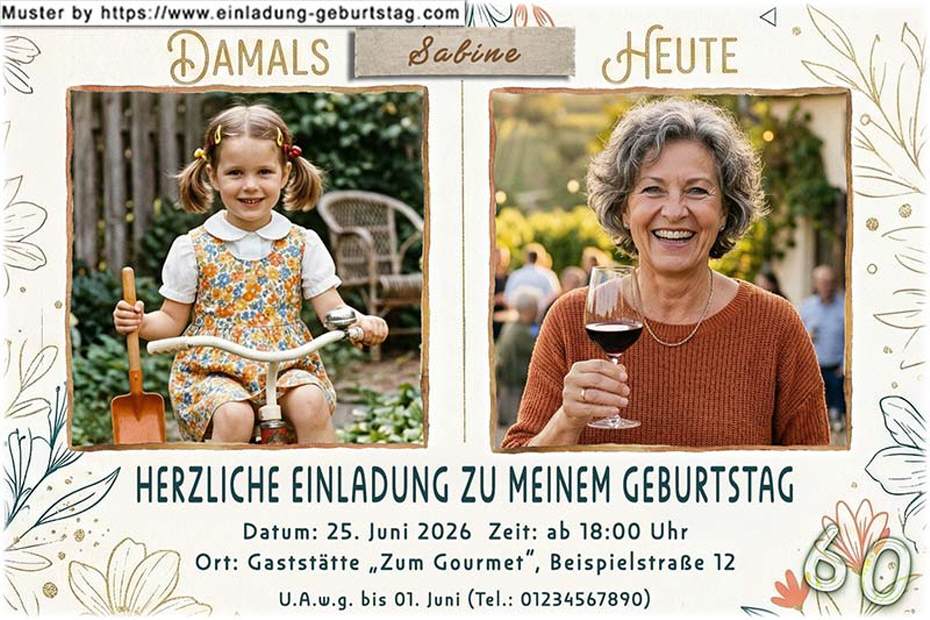 Beispiel: Solltet ihr nun daran denken: Was können wir ihr/ihm schenken?, dann fällt mir doch spontan schon ein, ein Geldgeschenk - das wär doch fein. Ich mache dann auf diese Weise eine schöne Urlaubsreise. (Wenn der Beispieltext übernommen werden soll, nur das Wort Beispieltext eingeben - Ihr/im wird angepasst - das Alter wird von der Außenseite übernommen)