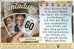 Das Spiel des Lebens – in die linke Karte wird ein Kinderfoto eingesetzt, in die mittlere ein aktuelles Foto und in die rechte Spielkarte Ihr Alter.