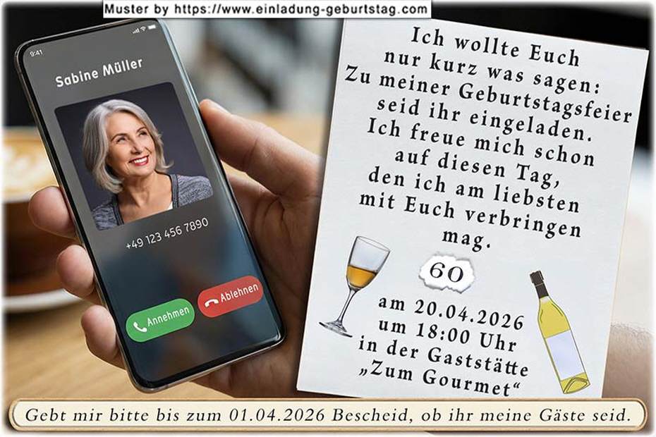 Beispiel: Gebt mir bitte bis zum 01.04.2026 Bescheid, ob ihr meine Gäste seid. - falls nicht gewünscht freilassen