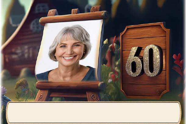 Ihr Foto wird in eine Staffelei eingesetzt. Ihr Alter befindet sich rechts daneben. Der Name des Gastes wird in das Textfeld unten gedruckt. Auf Wunsch kann das untere Textfeld zum selbst beschriften leer bleiben. Dies können Sie im Warenkorb wählen.