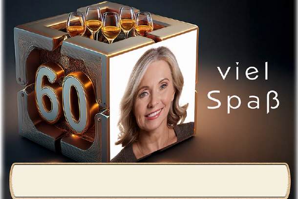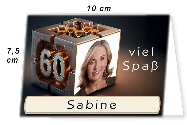 Ihr Foto und Ihr Alter werden in einen Würfel eingesetzt. Unten wird der Name des Gastes eingetragen. Auf Wunsch kann das untere Textfeld zum selbst beschriften leer bleiben. Dies können Sie im Warenkorb wählen.