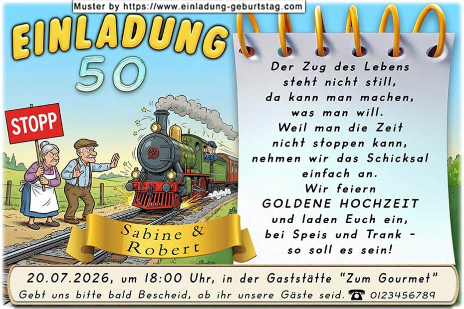 lustige Einladung Goldene Hochzeit, Lebenszug
