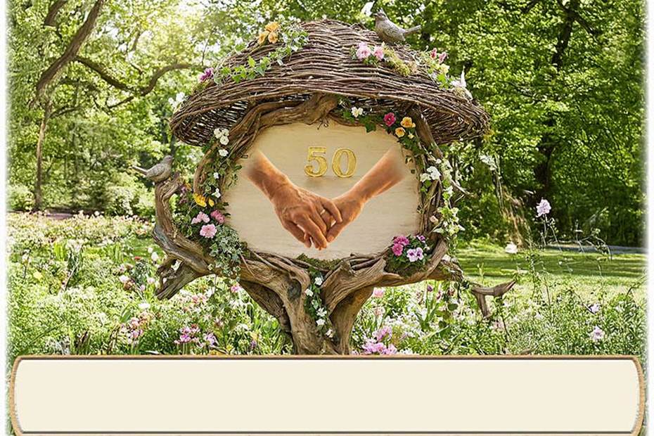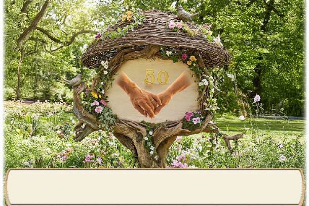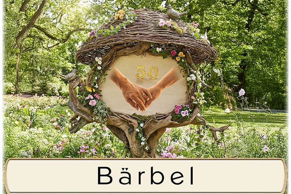 Hand in Hand unter Ihrer Jubiläumszahl. Der Name des Gastes wird in das Textfeld unten gedruckt. Auf Wunsch kann das untere Textfeld zum selbst beschriften leer bleiben. Dies können Sie im Warenkorb wählen.