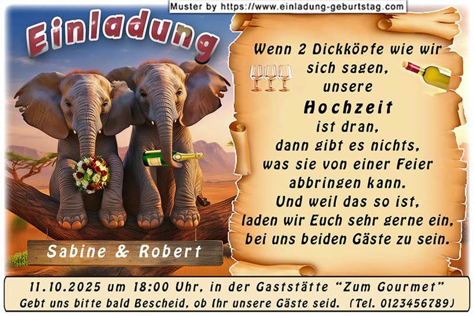 Hochzeitseinladung lustig - 2 Dickköpfe