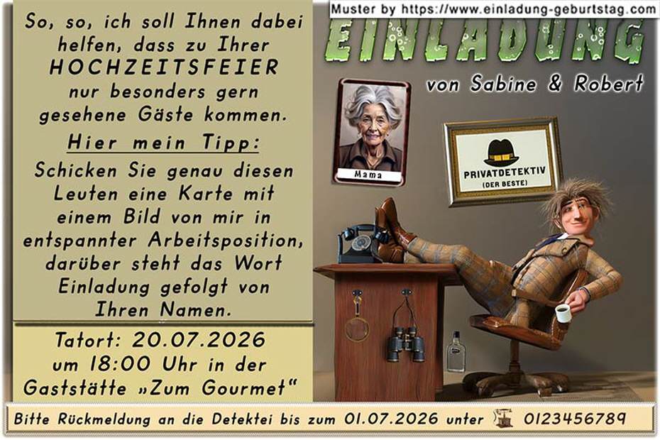 Einladung Hochzeit lustig - der Privatdetektiv