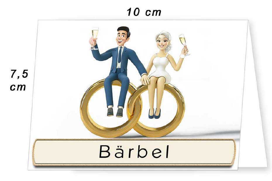 Tischkarte Hochzeit - das Paar auf 2 Ringen