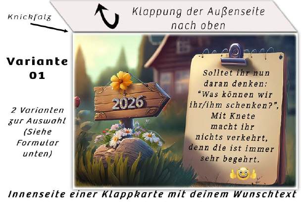 - oder das folgende Wunschtextformular ausfüllen, darunter auf ABSENDEN klicken, im Warenkorb die Stückzahl, mit/ohne Briefumschläge, den Kartentyp wählen und über das Warenkorbsystem die Bestellung abschließen. Nach Bestelleingang erhältst du ein änderbares Vorschaubild per E-Mail.