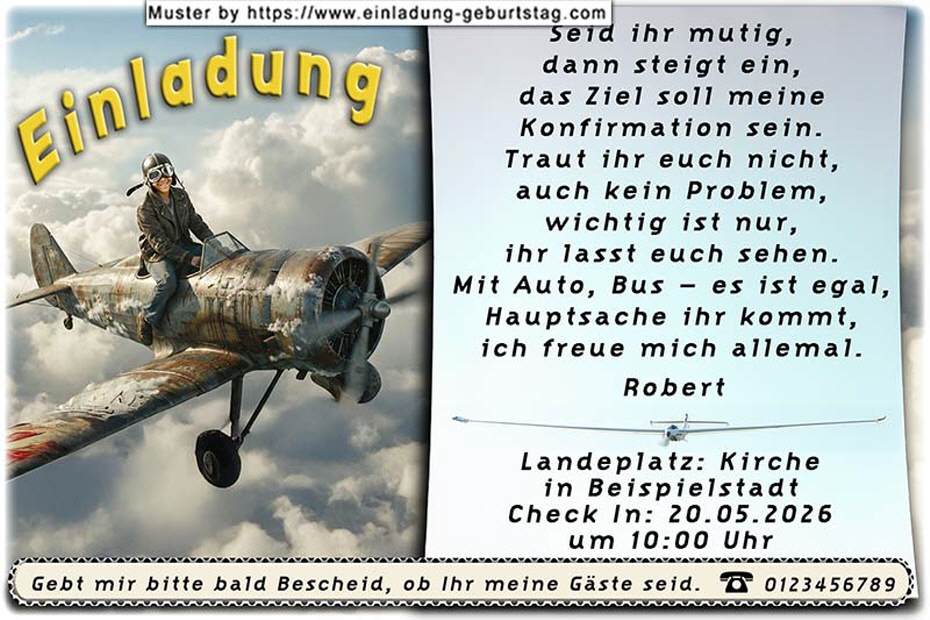 Du wünschst ein Vorschaubild dieser Einladungskarte mit deinen Angaben ohne gleich eine Bestellung aufzugeben - hier kannst du es unverbindlich anfordern und nach dem Erhalt selbst entscheiden, ob du diese Karten bestellen möchtest.