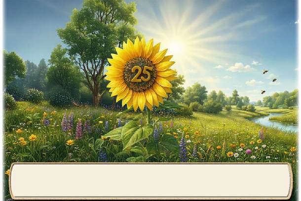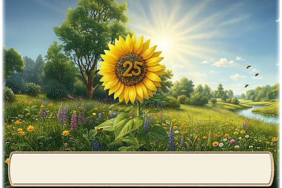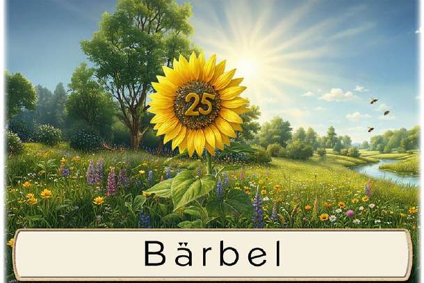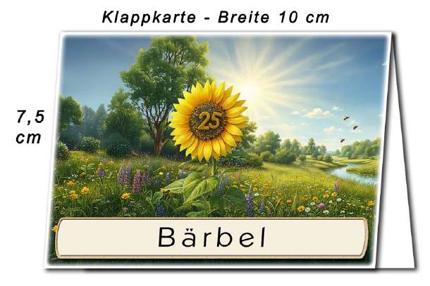 Ihre Jubiläumszahl in einer Sonnenblume. Der Name des Gastes wird in das Textfeld unten gedruckt. Auf Wunsch kann das untere Textfeld zum selbst beschriften leer bleiben. Dies können Sie im Warenkorb wählen.