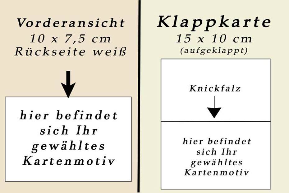 - Abmessung der Tischkarte: 10 x 7,5 cm (zusammen geklappt)