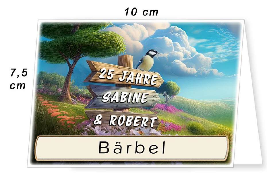 - Abmessung der Tischkarte: 10 x 7,5 cm (zusammen geklappt)