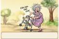 Tischkarte Geburtstag - Frau mit Rollator