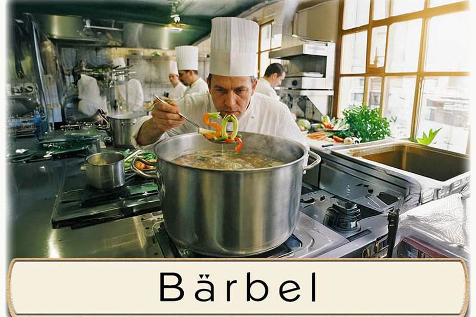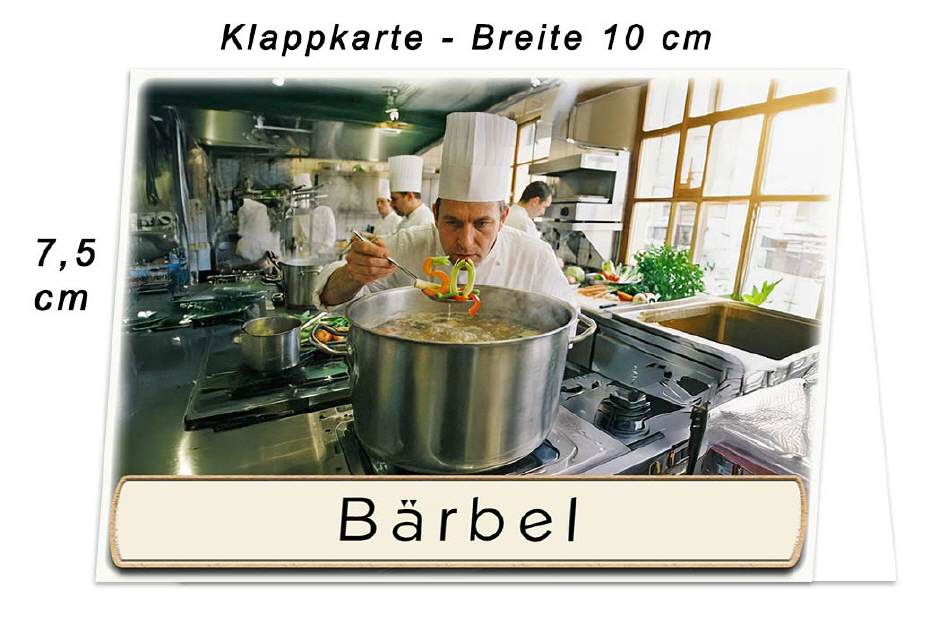 Ihr Chefkoch würzt die Suppe – die 50 darf da natürlich nicht fehlen. Unten auf die Karte wird der Name des Gastes gedruckt. Auf Wunsch kann das untere Textfeld zum selbst beschriften leer bleiben. Dies können Sie im Warenkorb wählen.