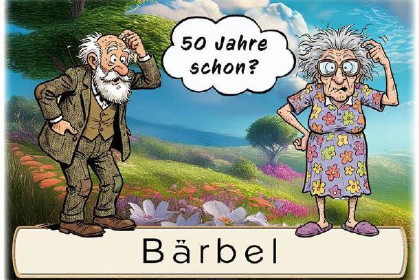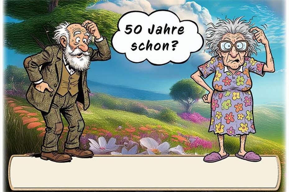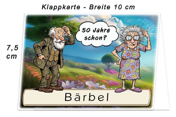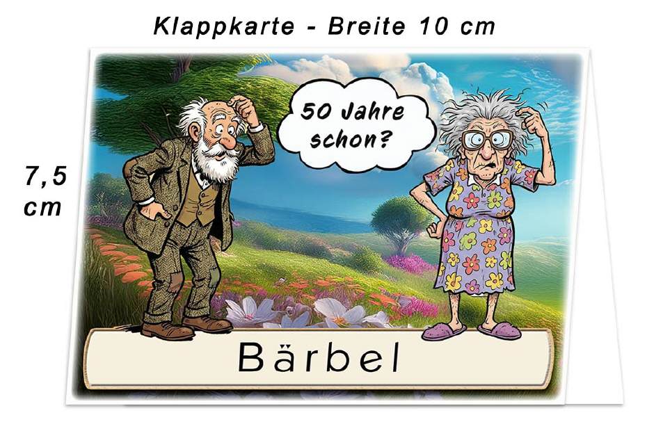 Das grübelnde Paar - 50 Jahre schon? Unten auf die Karte wird der Name des Gastes gedruckt. Auf Wunsch kann das untere Textfeld zum selbst beschriften leer bleiben. Dies können Sie im Warenkorb wählen.