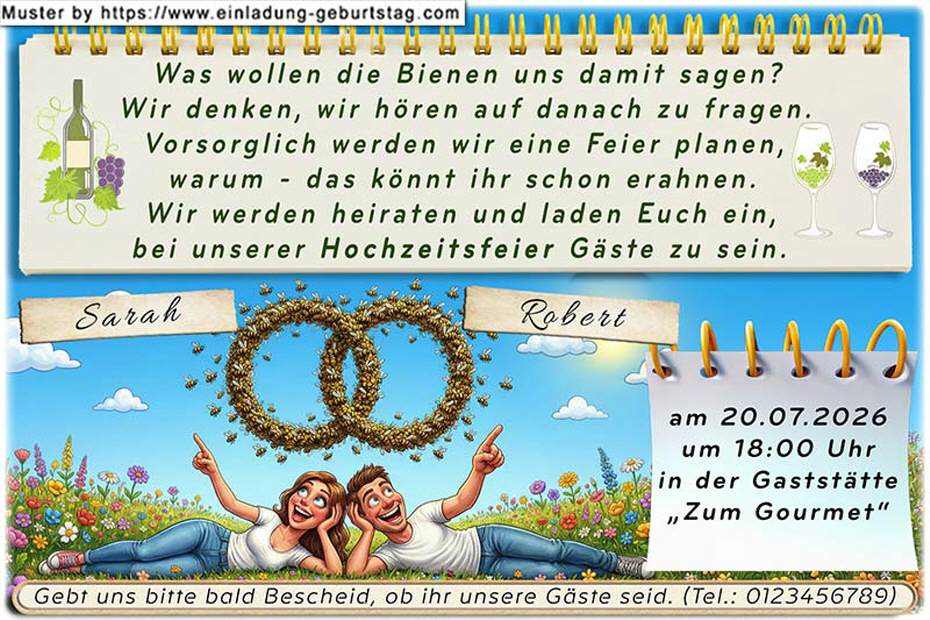 Einladung Hochzeit lustig - die Bienen