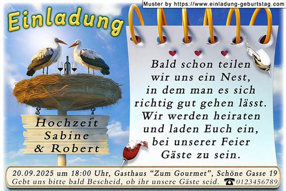 Einladung Hochzeit lustig - das Storchenpaar
