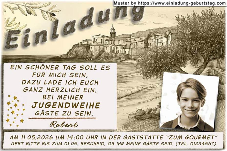 Einladung Jugendweihe - Foto in Sepia