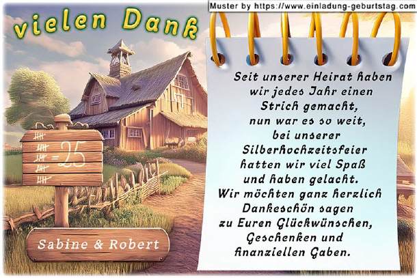 Danksagung Silberhochzeit - jedes Jahr 1 Strich