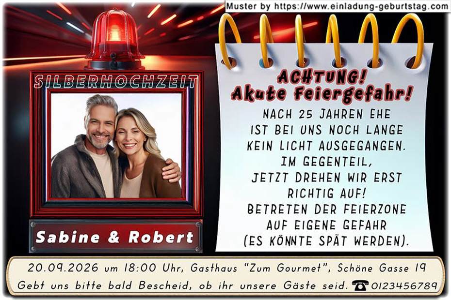 - erst unverbindlich ein Vorschaubild dieser Einladung per E-Mail erhalten und dann entscheiden, ob Sie bestellen möchten - klicken Sie hier