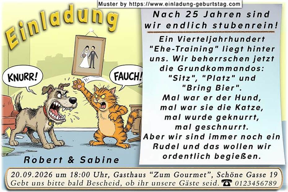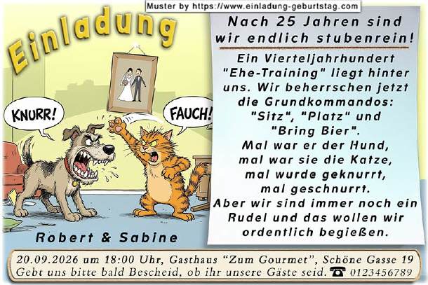 lustige Einladung Silberhochzeit - Hund & Katze